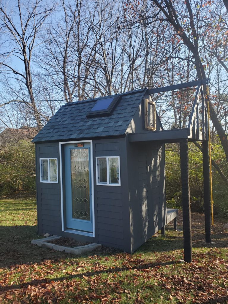 We finally did it! We completed an extraordinary fort (a.k.a. tiny home, boys retreat, mom retreat, etc.)!! It was a labor of love, filled with lots of lumber, concrete, recycled materials, nails, screws, paint, shingles, bruises, cuts, scrapes, muscles getting toned, ladders steps taken, and mistakes made and then corrected. Inside there is a hanging solar system and constellation display, a chalk board and desk/chair, remote control lights, a rock wall leading to a sky-lite sleeping loft, and a tiny door that leads to an upper deck. The outside has adorable square windows, two doors (both with glass inserts), a back deck, a rope ladder and rope pulley, and a swing. So many memories were made building this gem, and so many will be made in the years to come when we enjoy it. We are grateful for the hard work and dedication of those we love in the creation of our special space.